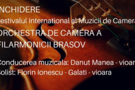 INCHIDEREA Festivalului International al Muzicii de Camera ORCHESTRA DE CAMERA A FILARMONICII BRASOV Conducerea muzicala: Danut Manea - vioara Solist: Florin Ionescu - Galati - vioara In program: W.A. Mozart - Divertisment in Re major G.B.Pergolesi - Concert pentru vioara si orchestra in Si bemol major J.S. Bach - Concertul pentru vioara si orchestra in…