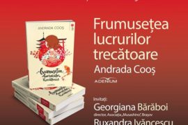 Editura Adenium și Librăria Humanitas Brașov vă invită sâmbătă, 12 august, de la ora 18.30, la lansarea cărții de debut a scriitoarei Andrada Cooș, "Frumusețea lucrurilor trecătoare". Invitați: Georgiana Bărăboi, director, Asociatia Musashino, Brașov, Ruxandra Ivancescu, scriitoare, Romulus Bucur, scriitor. Moderator: Daniel Nazare, director, Biblioteca Județeană „George Barițiu”, Brașov. Lansarea va avea loc în prezența…